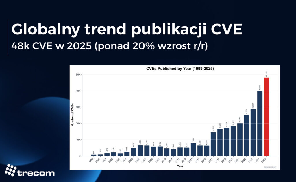 W 2025 roku wykryto ponad 48 000 nowych podatności. Dla zespołów bezpieczeństwa to oznacza nieustanny strumień potencjalnych zagrożeń.
