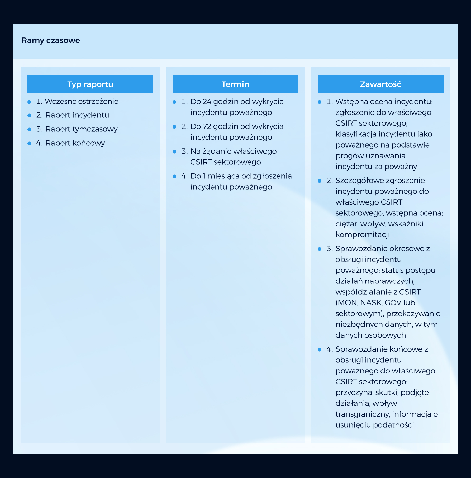 Drugim ważnym elementem jest zrozumienie, jakie ramy czasowe i typy raportów przewiduje NIS 2.